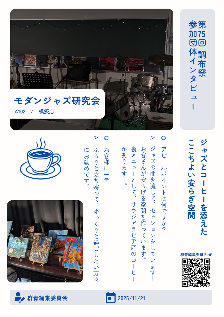オンライン記事21 Nov 2025第75回 調布祭 インタビュー @1日目1098 PV モダンジャズ研究会 123456789101112131415161718192021222324252627