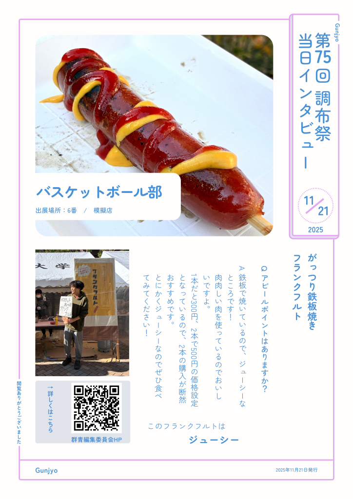 オンライン記事21 Nov 2025第75回 調布祭 インタビュー @1日目1098 PV バスケットボール部 123456789101112131415161718192021222324252627