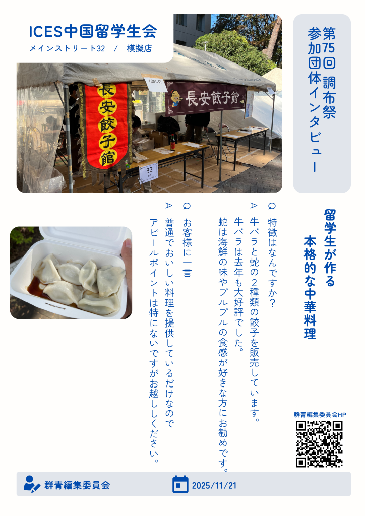 オンライン記事21 Nov 2025第75回 調布祭 インタビュー @1日目1098 PV ICES 中国留学生会 123456789101112131415161718192021222324252627