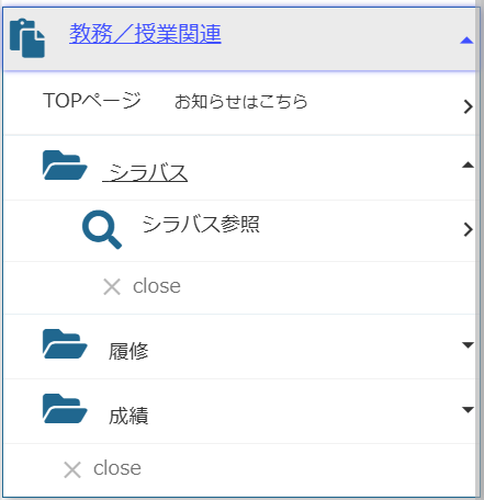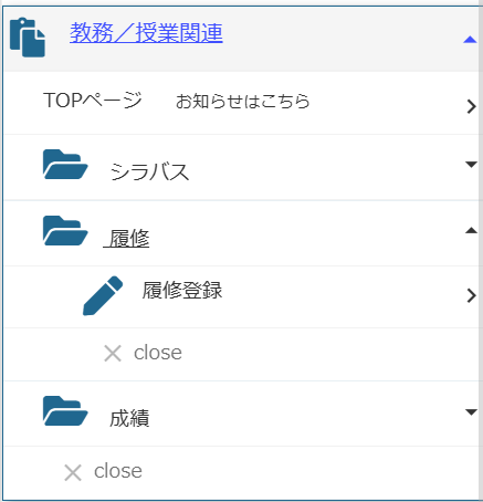 まず、左にある教務/授業関連というプルダウンメニューを開きます。
